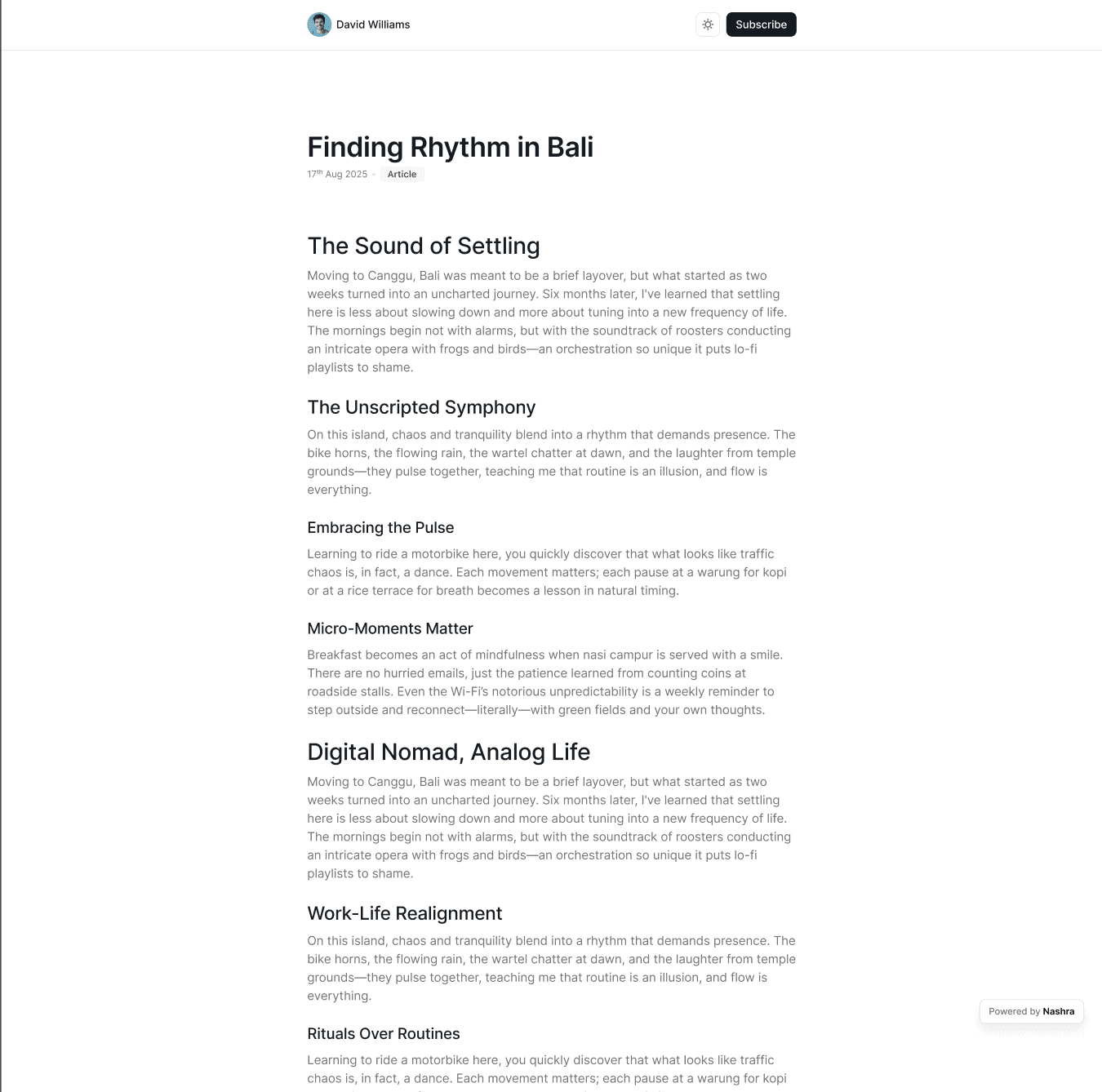 Turn your words into a blog — no setup, no plugins, no stress.