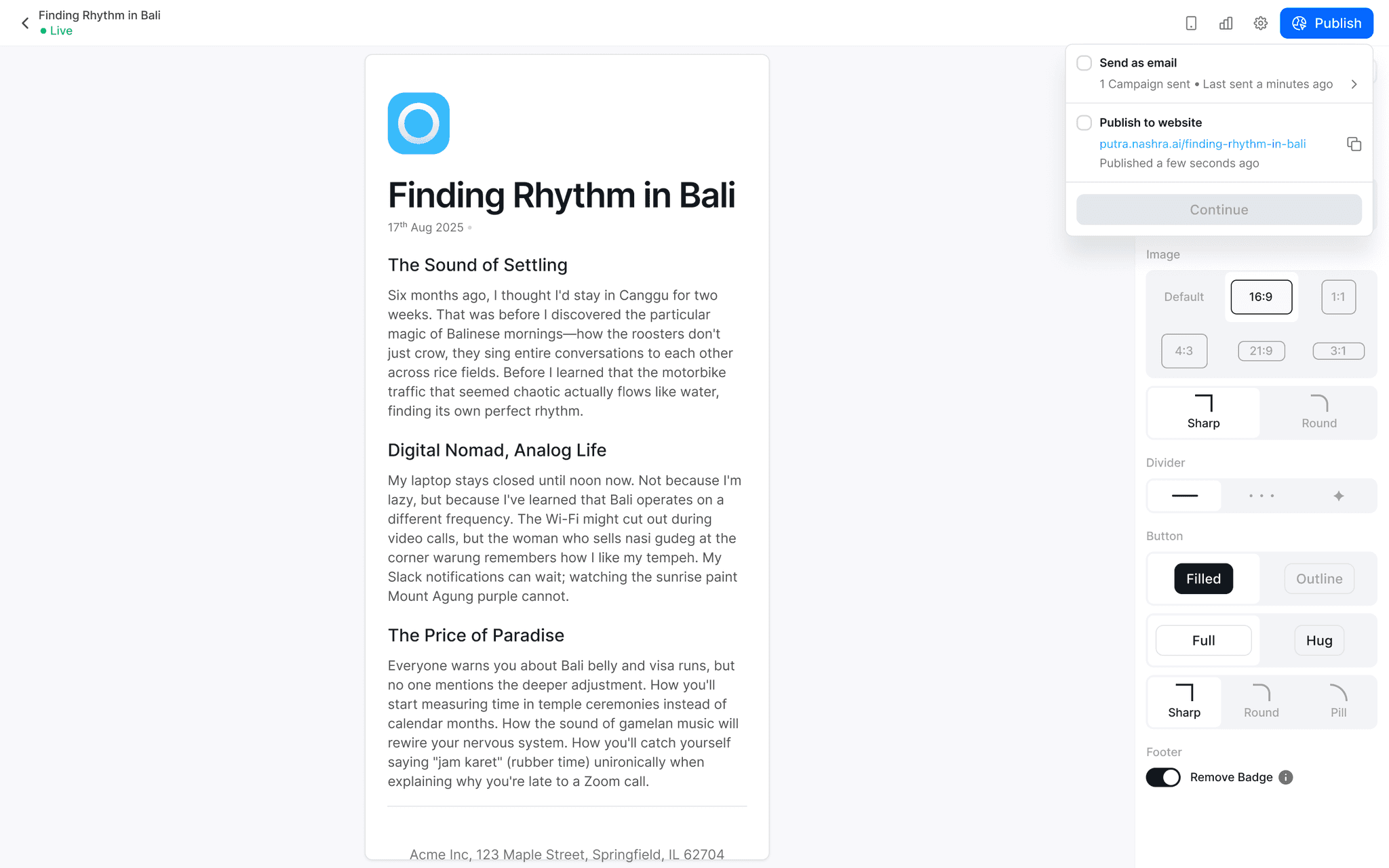 Share your posts as beautiful, responsive emails with one click.